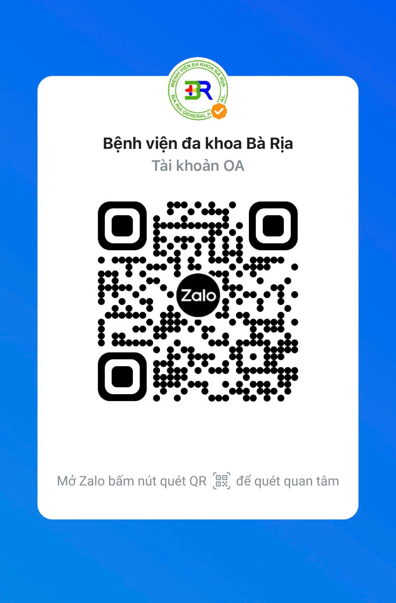 Nhằm giúp người dân dễ dàng cập nhật thông tin y tế và các dịch vụ khám chữa bệnh, Bệnh viện Đa khoa Bà Rịa đã chính thức triển khai Zalo Official Account.